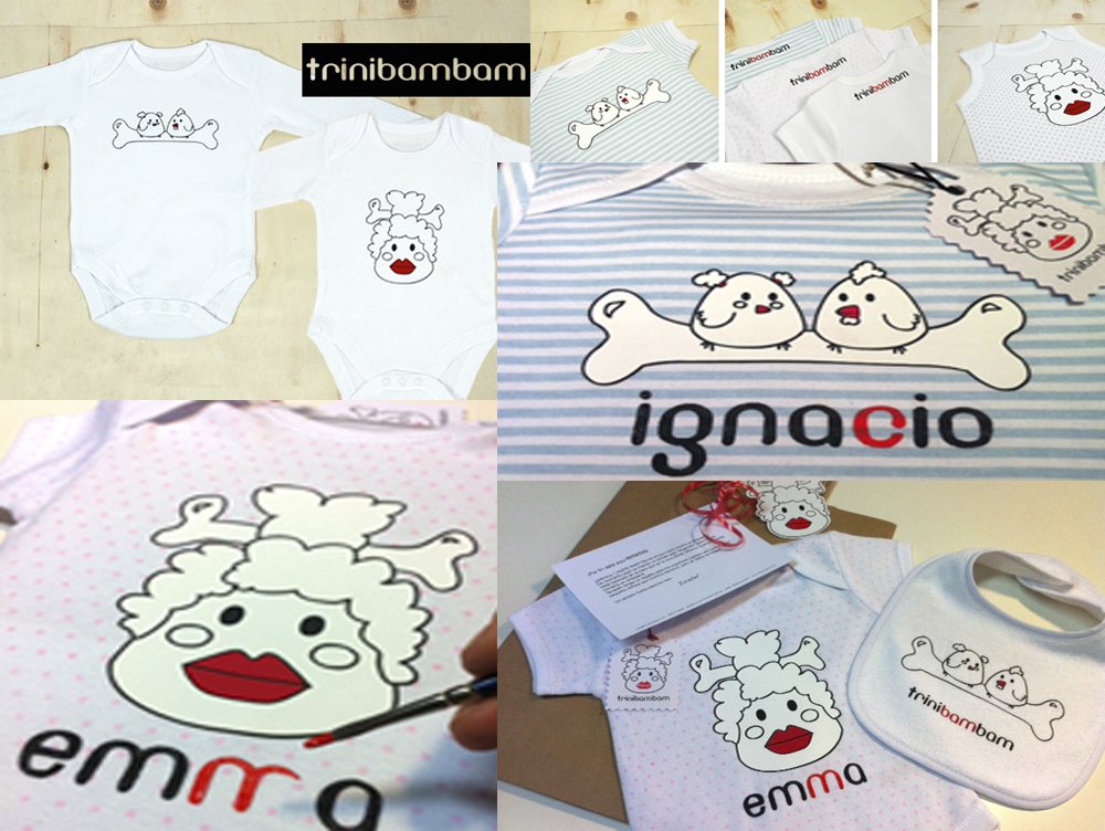 Os cuento todo esto porque hace unos días tuve el privilegio de conocer (todavía telefónicamente) a Marta de Trinibambam ella por su parte hace ropa personalizada para niños, cestas de bebe, camisetas, bodys.. De todo! Si tenéis pequeñuelos en casa tiene muchas cosas que para la carta de los Reyes son geniales! Yo ya he encargado uno al paje Real, a ver si hay suerte…
